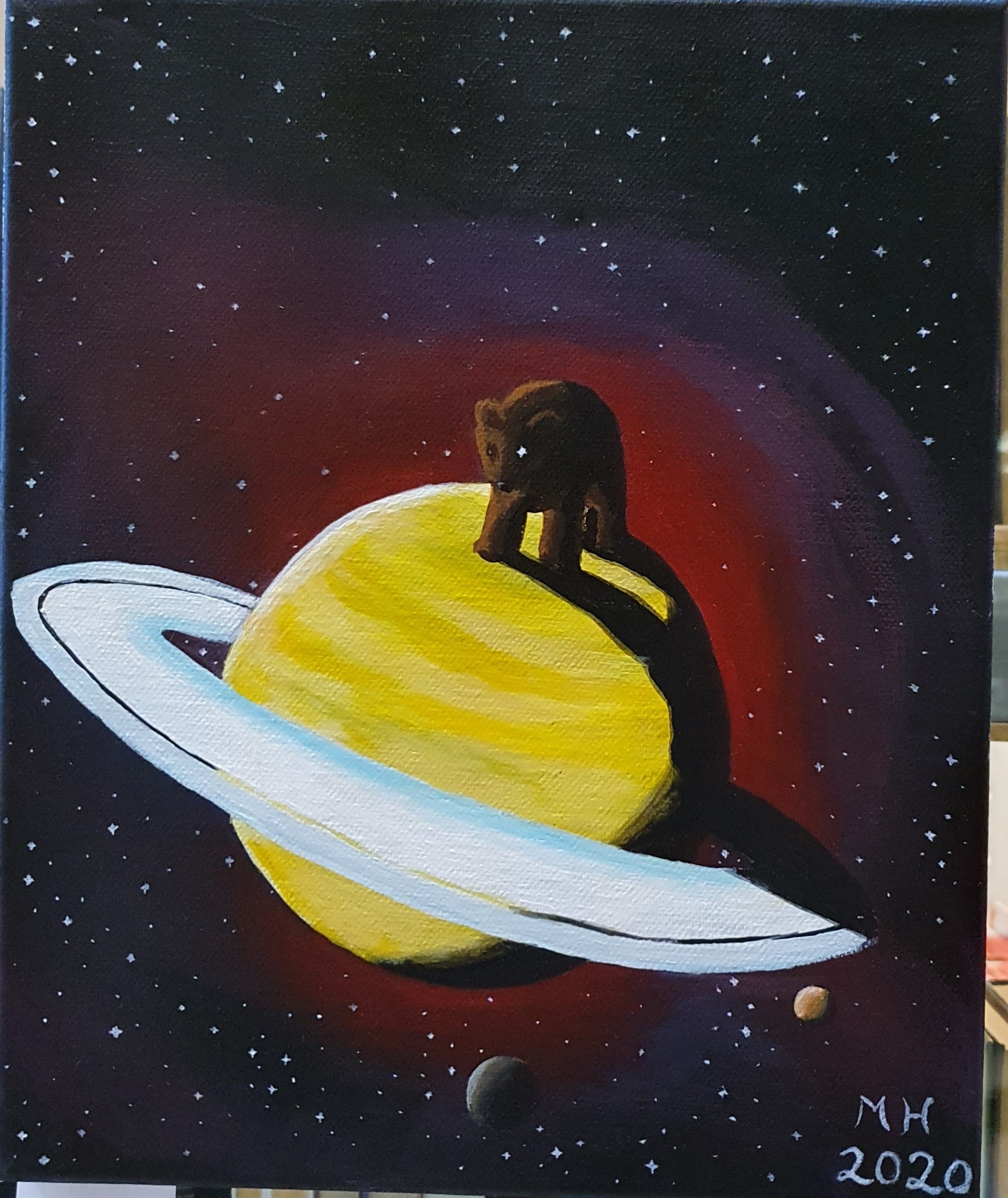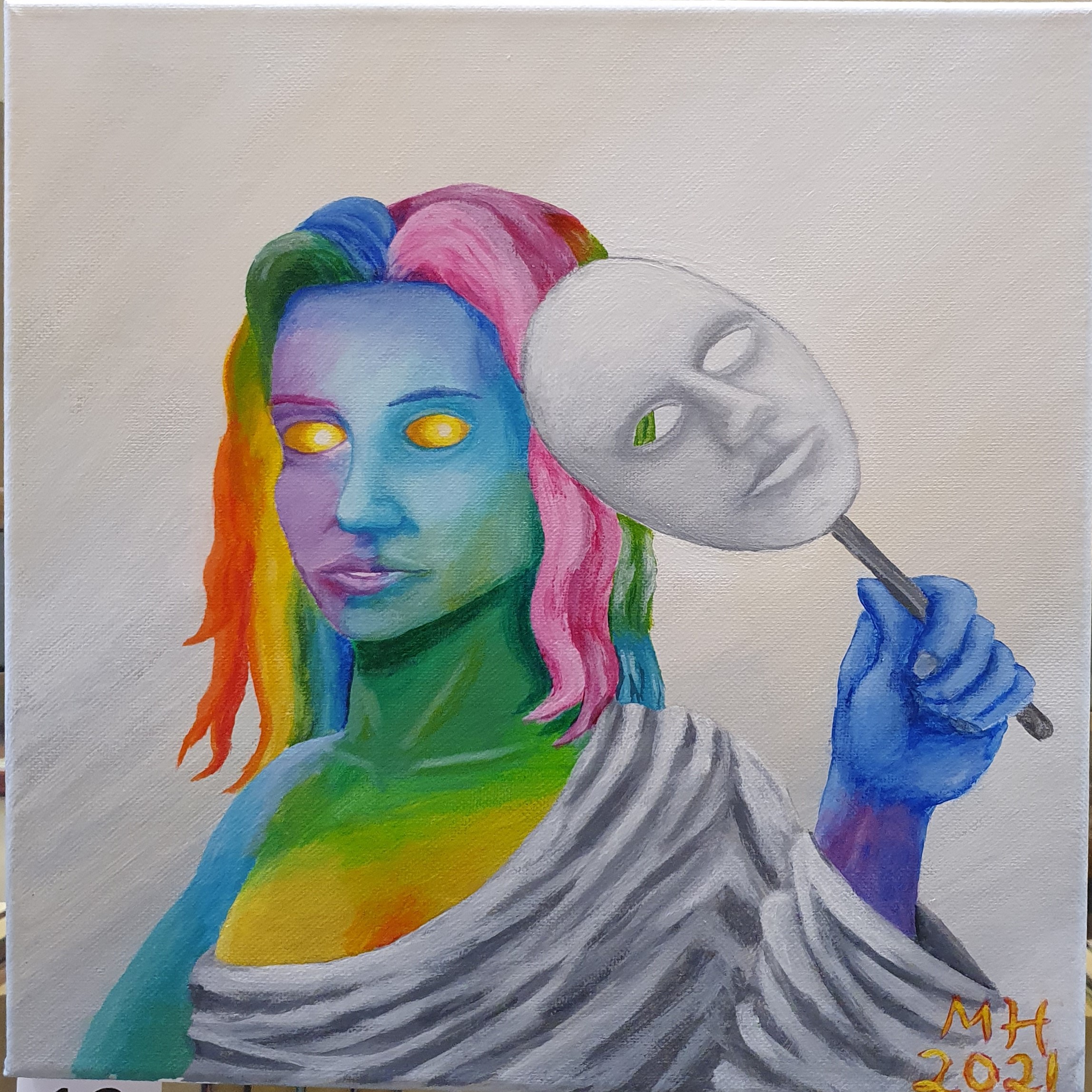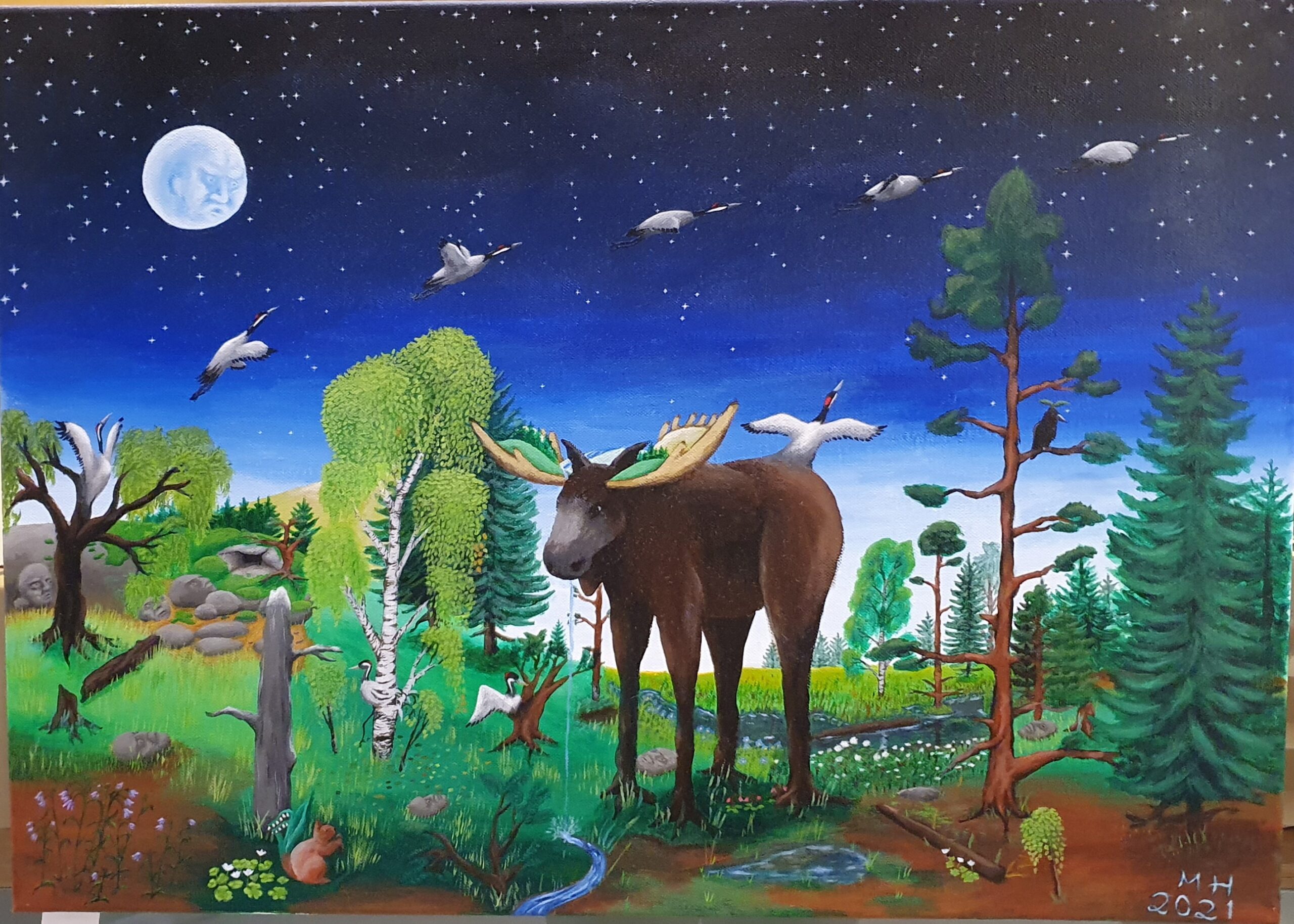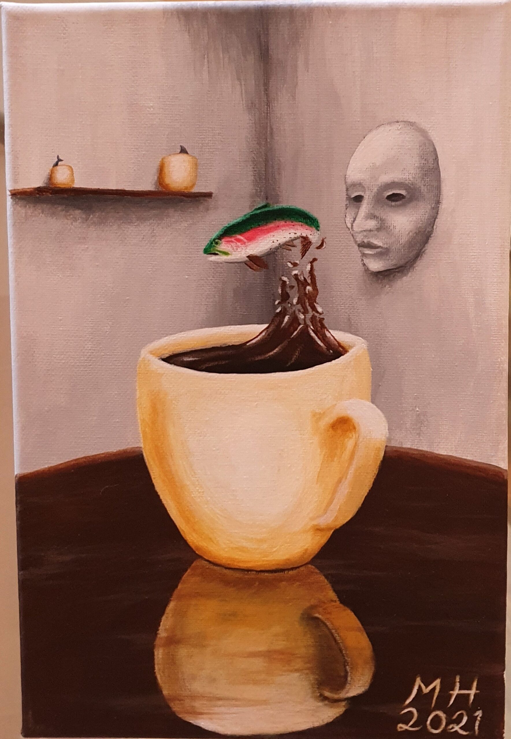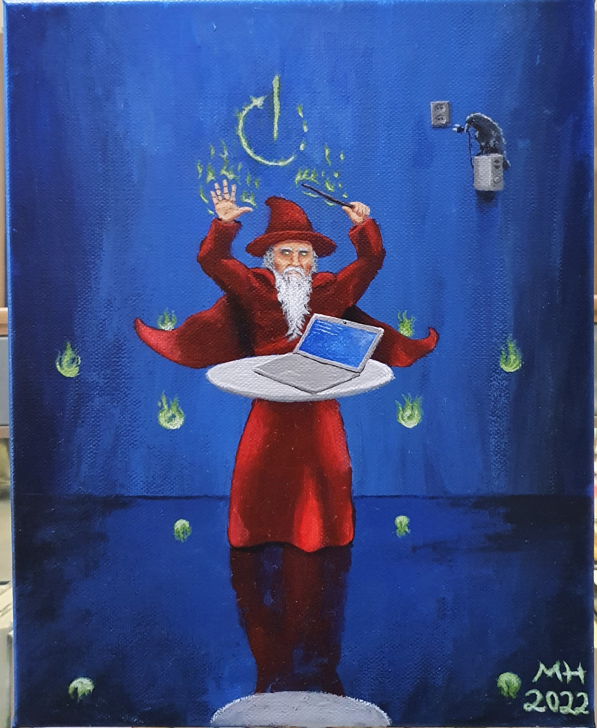 My paintings are made on canvas using acrylic colors. I like to use bold colors and create strong contrasts. I rarely paint simple landscapes or portraits, preferring to add some sort of a twist.