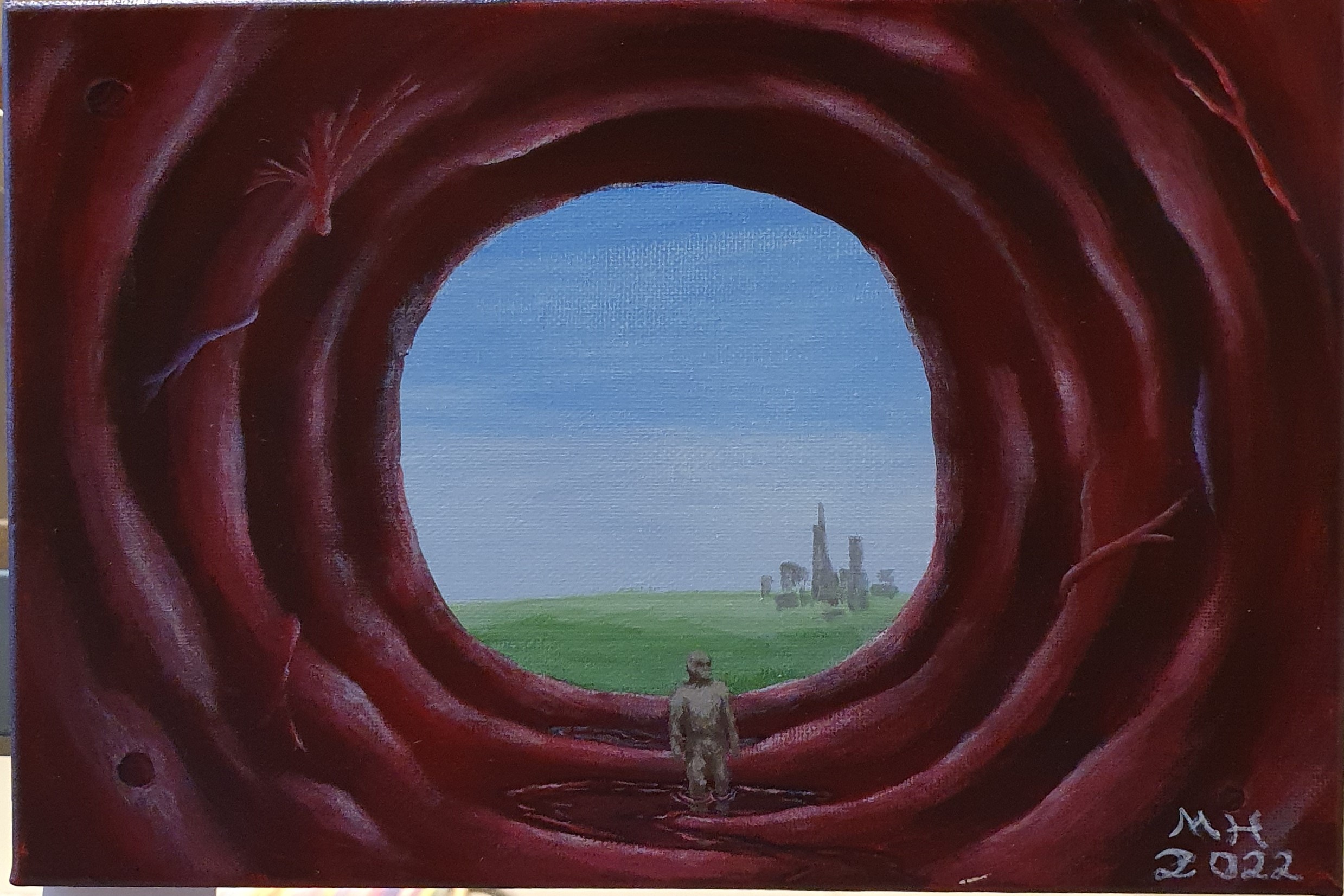 Acrylic painting exploring the contrast between what is organic and what is industrial, as well as reflecting the disquieting side of the natural world.
